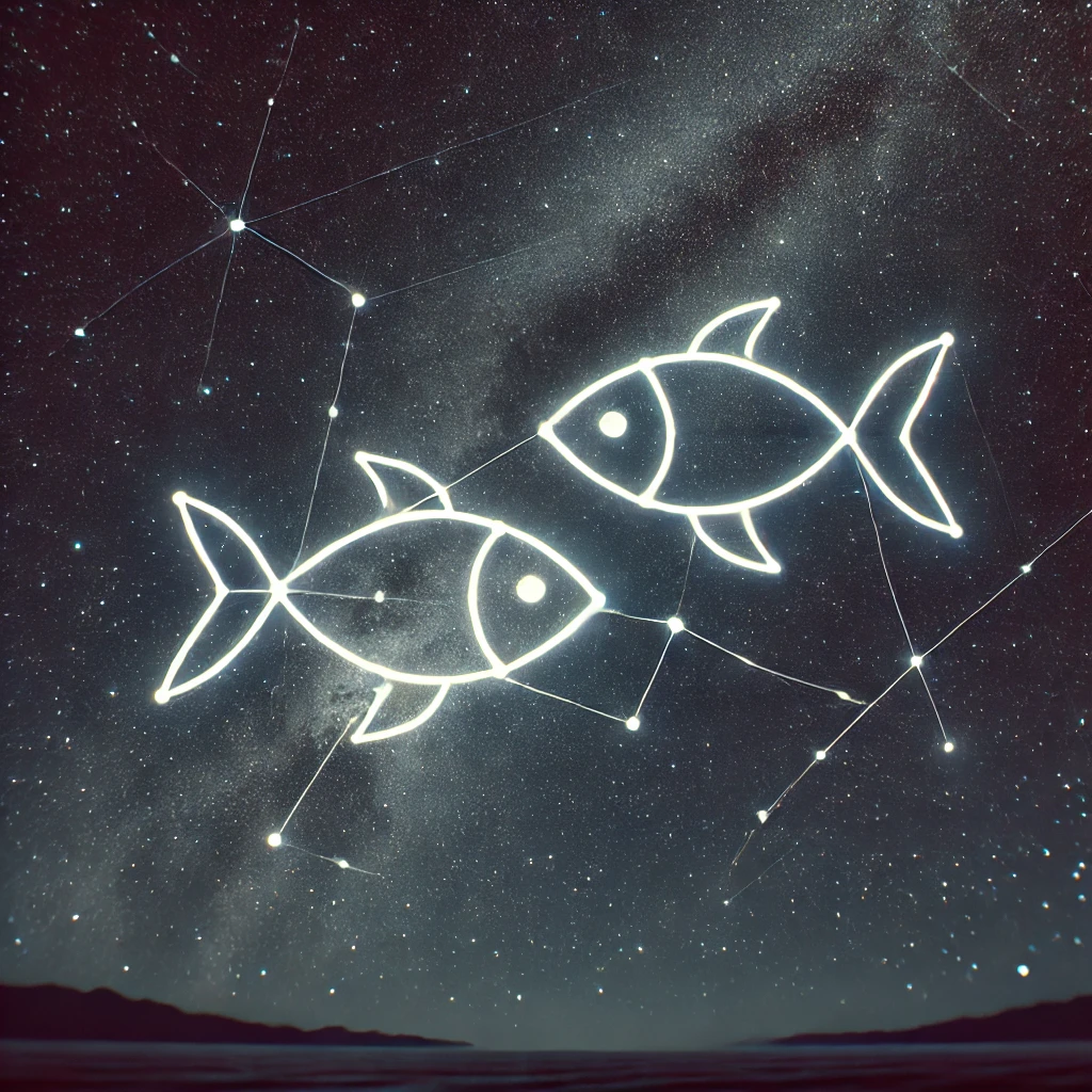 물고기자리는 두 마리의 물고기가 서로 반대 방향으로 헤엄치는 모습을 형상화한 별자리입니다. 이는 종종 물고기자리 사람들의 내면에서 느끼는 두 가지 상반된 감정이나 생각을 상징하기도 합니다. 물고기자리 사람들은 보통 감수성이 풍부하고, 직관적이며, 다른 사람들의 감정을 잘 이해하는 성격을 지니고 있습니다. 그들은 창의적이고 상상력이 풍부하며, 영적 세계에 대한 깊은 관심을 가지고 있습니다.