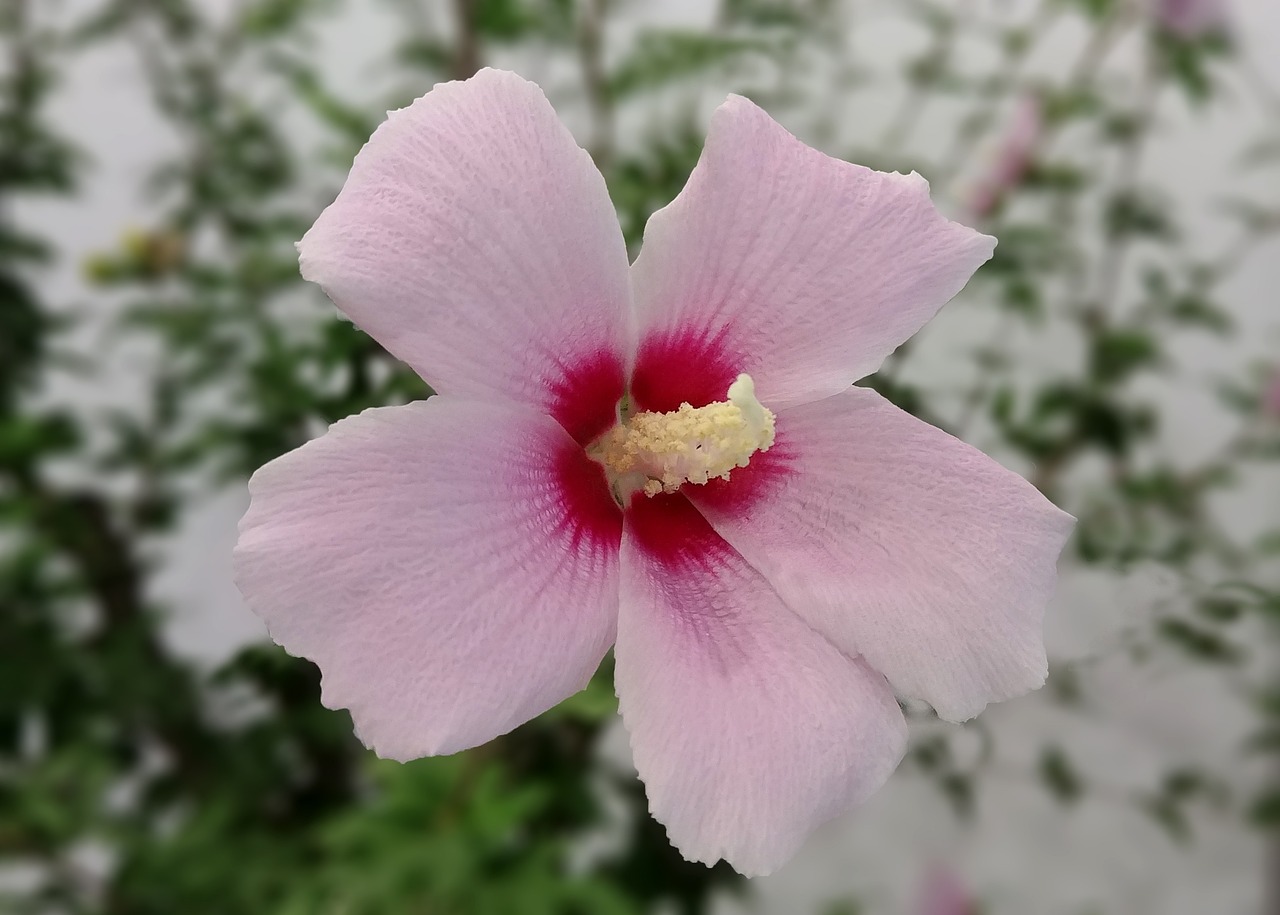 무궁화는 보통 2~4미터 정도의 높이로 자라는 나무이며, 여름철에 화사한 꽃을 피워요. 꽃잎은 주로 5장의 단순한 구조를 가지고 있으며, 하얀색, 분홍색, 보라색 등 다양한 색상을 띠고 있어요. 꽃의 중심부는 짙은 자주색이나 보라색으로 물들어 있어, 단순한 꽃잎 구조 속에서도 섬세한 미를 느낄 수 있습니다.